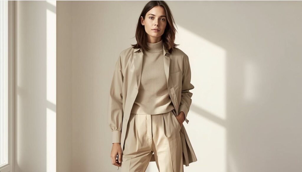 This season favors gentle neutrals and softened tones. Shades like ivory, muted olive, sand, and soft blue blend seamlessly.